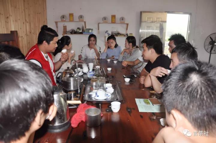 接下來是大家帶來的私藏茶分享環節。嬋娟帶來一款2011年政和的老茶餅。大家踴躍討論著政和白茶與福鼎白茶的區別。從外形上看這款政和老白茶的芽頭偏白,香氣還是不錯的,而口感上卻比福鼎白茶淡了許多。小雷說到制作工藝也是不同的,政和白茶走水之后需關電回水,以至于芽頭上的水回到梗上,所以茶梗幾乎是黑的,這在新茶的表現上比較明顯。